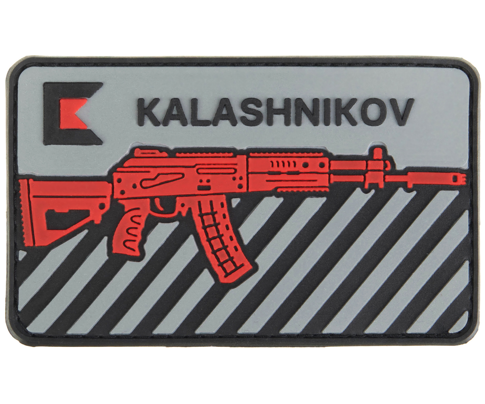 Фирменный шеврон Калашников с изображением автомата Калашникова АК-12 и логотипом.