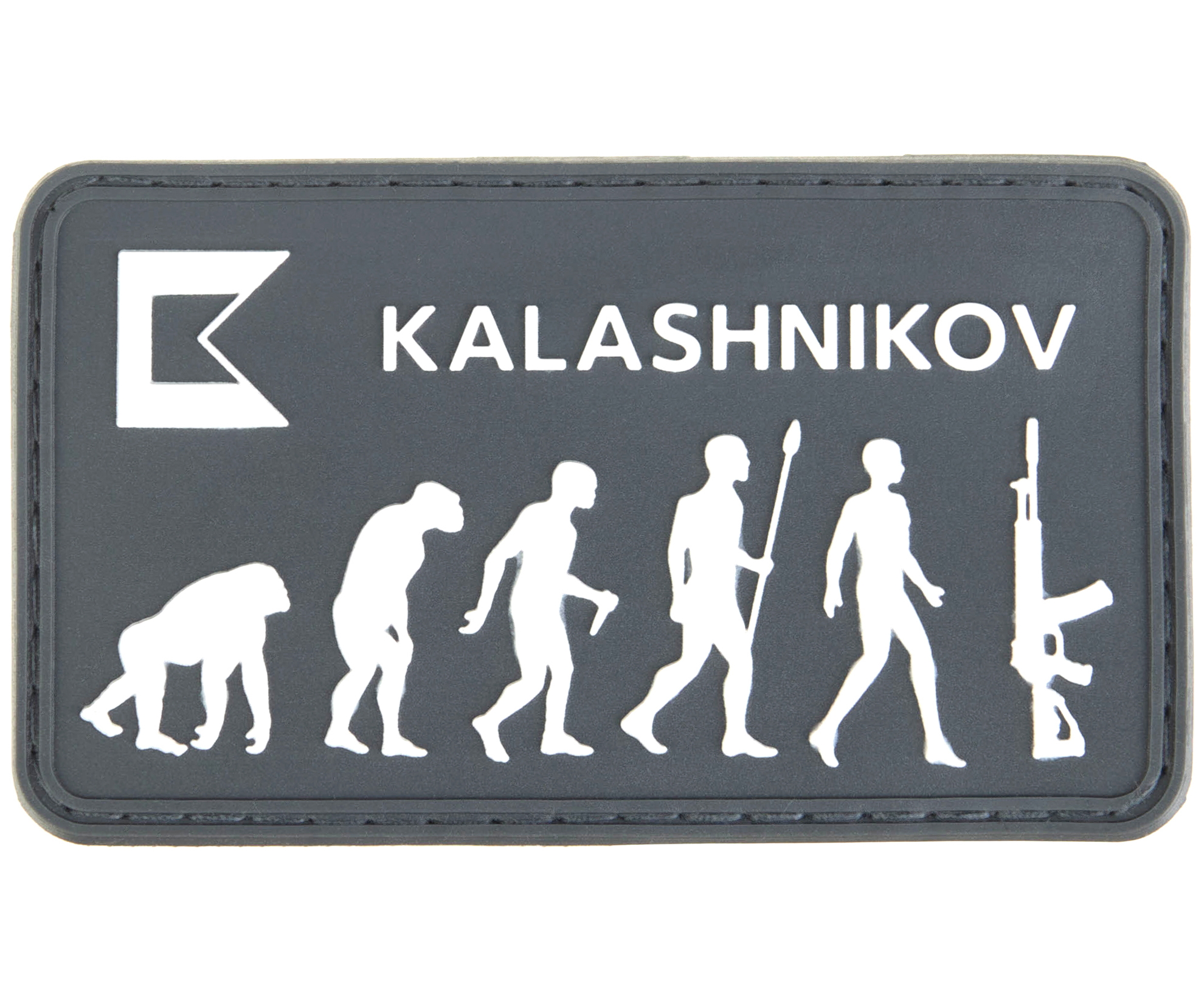 Фирменный шеврон Калашников с изображением эволюции и логотипом.