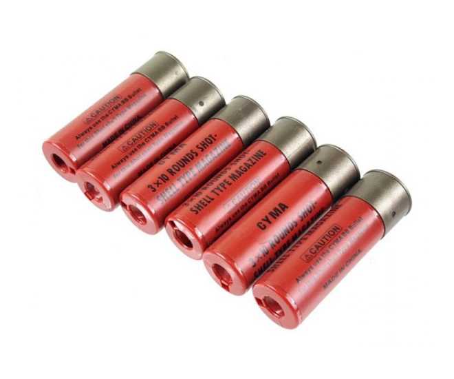 Патроны-шеллы для спрингового дробовика производства фирмы Cyma, Китай. Выполнен из ударопрочного пластика. Вместительность шелла: 21 шарик. В комплекте 6 шеллов.