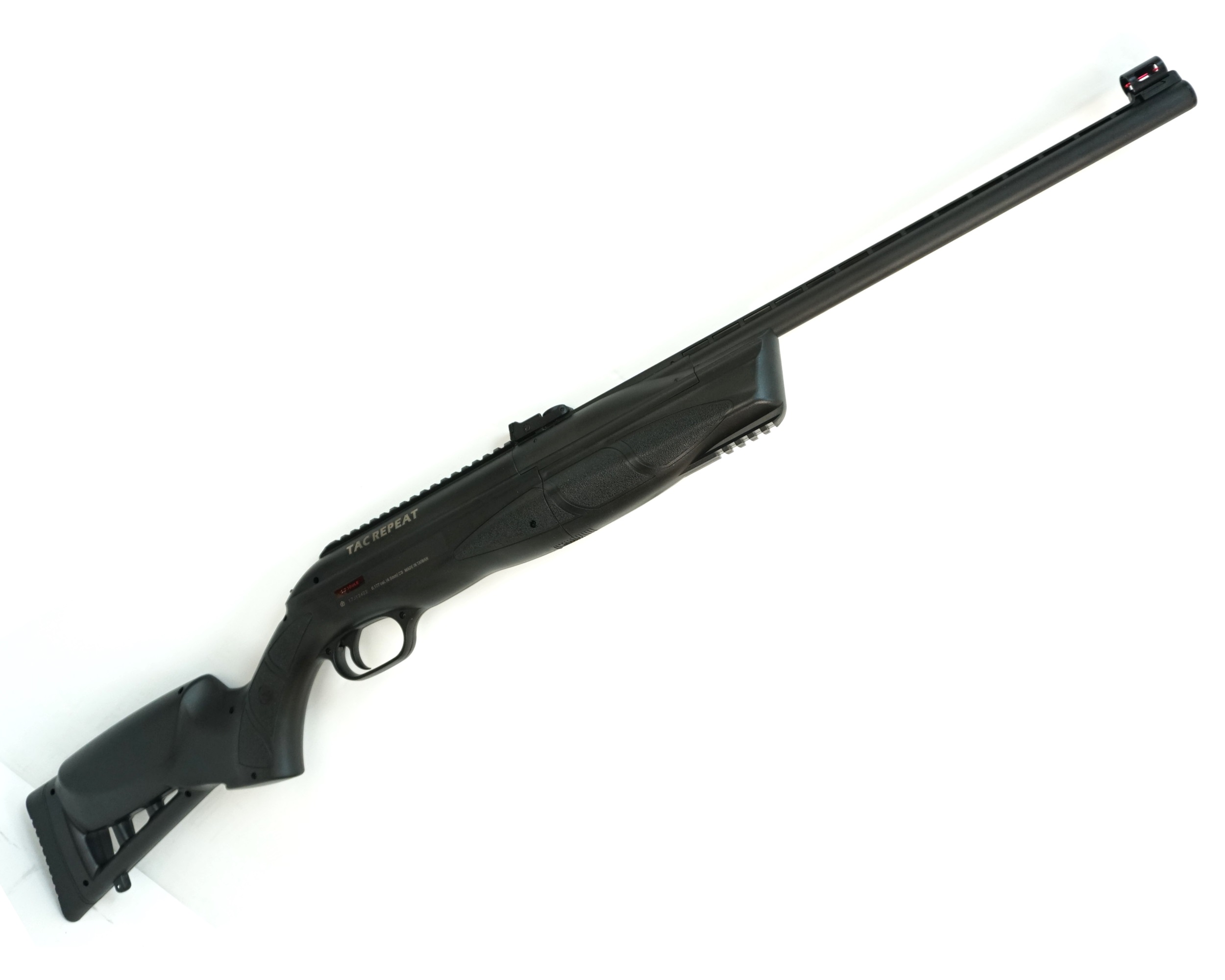 Пневматическая винтовка ASG TAC Repeat (3 Дж) – это «переломка» пружинно-поршневого типа от датского бренда, довольно качественная и надежная модель по недорогой цене. В отличие от большинства винтовок данного типа, ASG TAC Repeat стреляет в полуавтоматическом режиме, энергия выстрела обеспечивается баллончиком на 88 гр. углекислого газа. Магазин винтовки рассчитан на 12 пуль из свинца калибра 4,5 мм. Скорость выстрела в штатной комплектации винтовки – 73 м/с, после апгрейда скорость выстрела увеличивается до 175 м/с.
