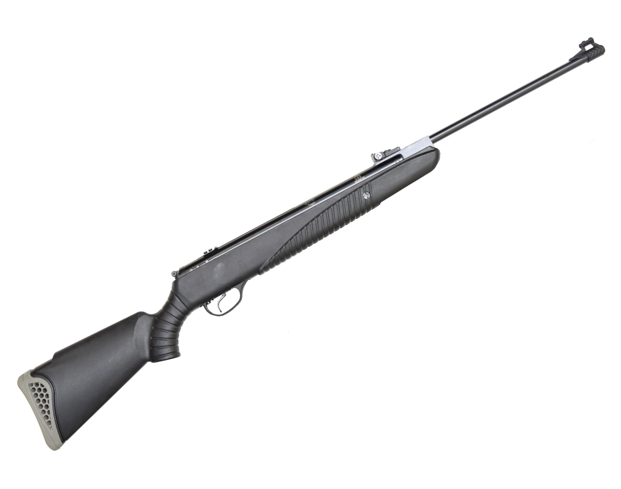 Представленная винтовка обладает отличной энергией при выстреле и дает максимально точную стрельбу, благодаря оптико-волоконной открытой системе прицеливания, подстройка которой производится как по горизонтали, так и по вертикали. Прицельная планка имеет вход для крепления прицельной оптики или колиматорного прицела.