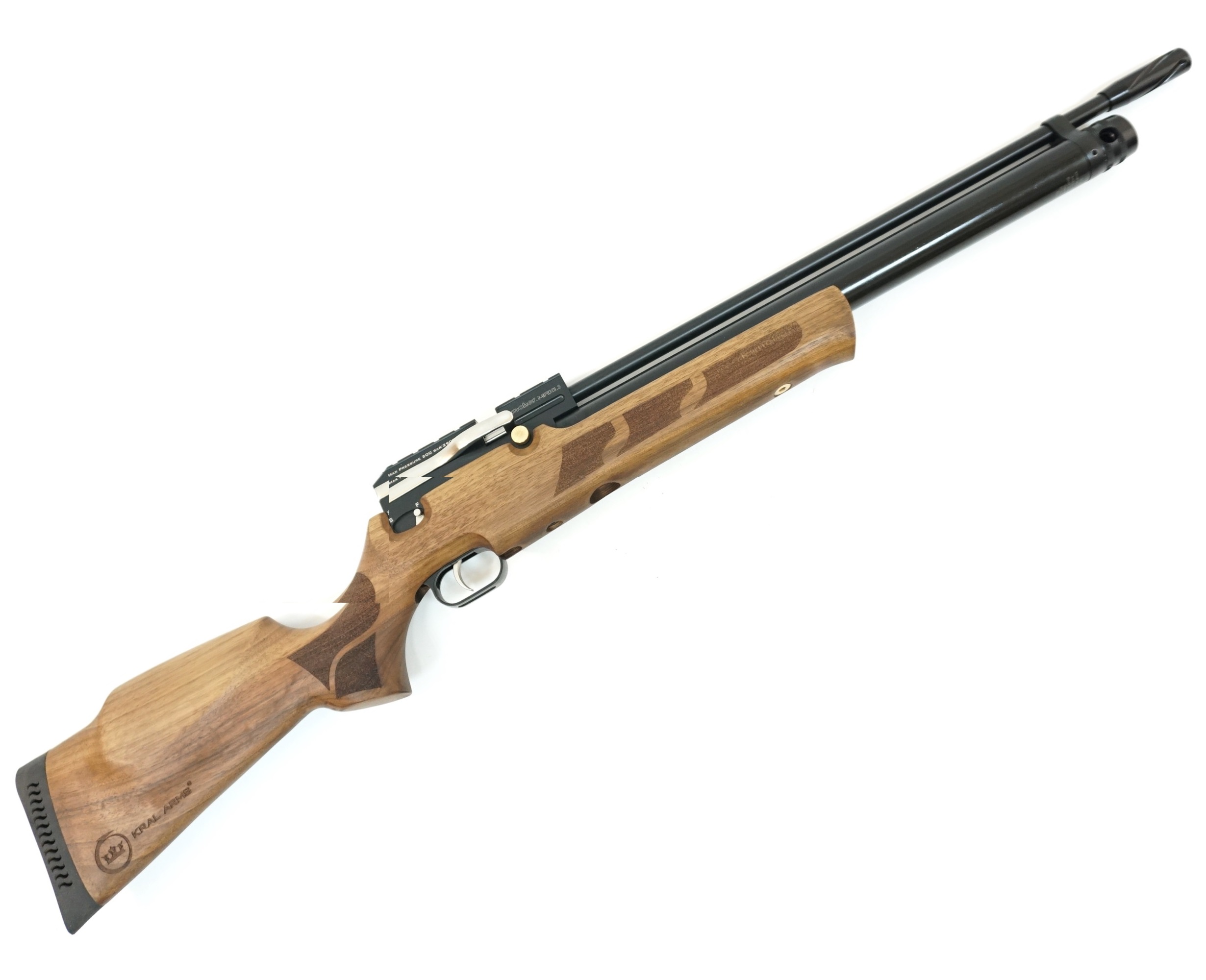 Пневматическая винтовка Kral Puncher Maxi 3W 6,35 мм – это премиальное оружие от турецкого бренда, при этом достаточно доступное по цене. Винтовка отличается крепким и вместительным ресивером, расположенным под стволом. Объем ресивера – 280 куб. см.