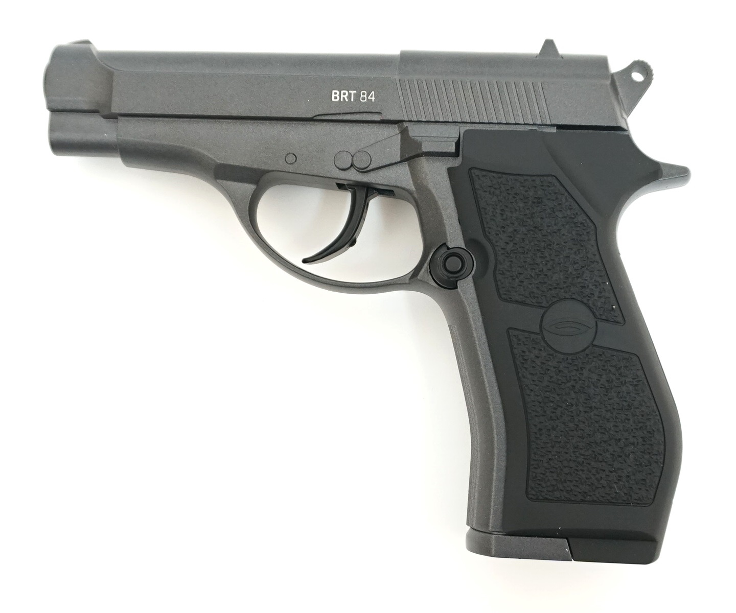 Скорость полета пули, выпущенной из Gletcher BRT 84, составляет приблизительно 125 метров за секунду. Магазин этой модели может в себя вместить 21 пулю типа ВВ. Материал корпуса этого пневматического пистолета полностью состоит из очень прочного металла. Режим стрельбы здесь — одиночные выстрелы. Масса модели — 700 гр.