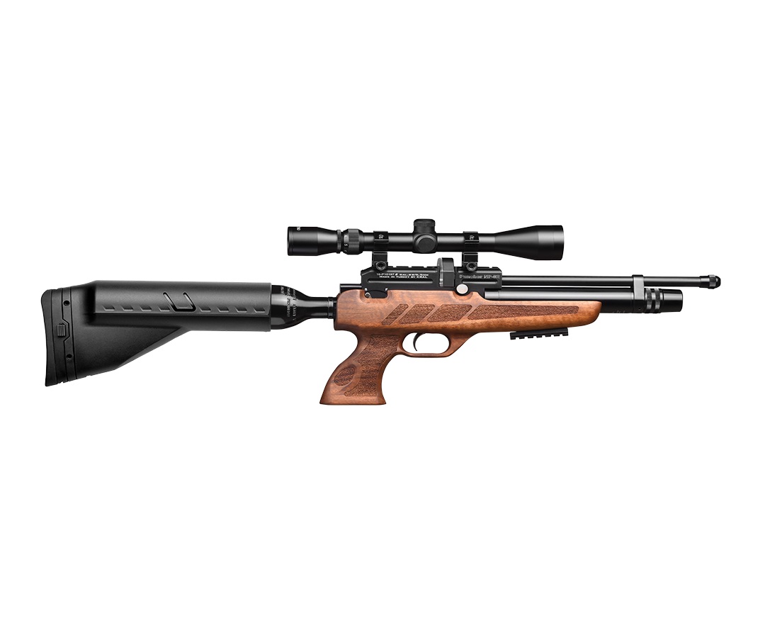 Kral Puncher NP-02 (орех, PCP) наверняка заинтересует опытных стрелков, такая пневматика обеспечит возможность автономной работы длительное время и обладает весьма приличной мощностью.