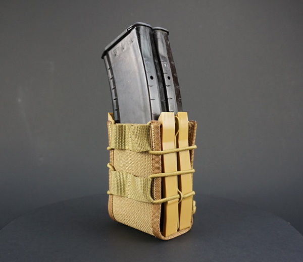 Внутренние рамки из высокопрочного полиуретана под давлением фиксируют магазины в подсумке, не позволяя им выпасть и не мешают извлечению. Эластичный жгут регулируется и дополнительно фиксирует магазины, защищая их от утери.