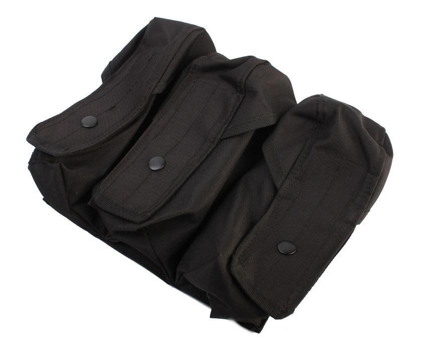 Тройной оружейный подсумок для магазинов АК либо схожих, закрытого типа, производства Китай. В каждое отделение помещается по 2 магазина. Выполнен из нейлона, клапан закрывается на липучку Velcro и кнопку. Все материалы высокого качества и обладают большим запасом прочности и износостойкости.