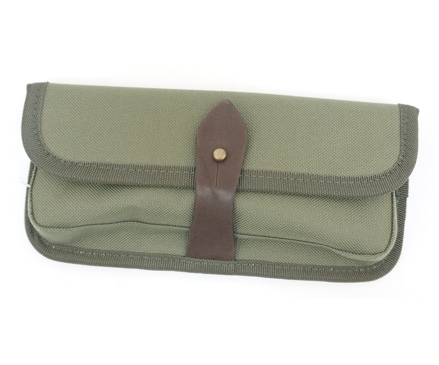 Однорядная патронная сумка закрытого типа из ткани кордура для хранения и транспортировки восьми патронов 12, 16, 20 калибра. Крепится с помощью шлейки на поясной ремень. Кобурная застёжка подсумка из натуральной кожи. Фиксация патронов в сумке за счёт прорезиненной ленты. Габариты подсумка в застёгнутом состоянии 210 мм (длина) х 75 мм (ширина) х 40 мм (высота).