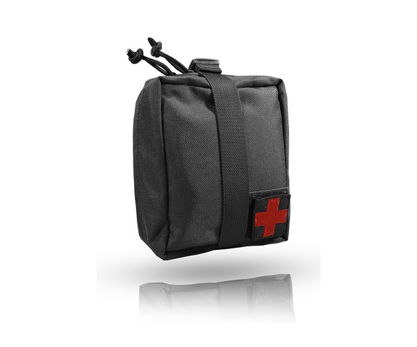 Закрывается на молнию, отсек открывается полностью и дает полный доступ к содержимому аптечки, на внешней части аптечки, закреплена медицинская нашивка на велкро, что упрощает идентификацию назначения. За счет отстегивания подсумка от платформы, к нему можно получиться максимально удобный доступ. Возможно размещение на обычном ремне. Доступен в различных цветах, данный вариант в черном цвете.