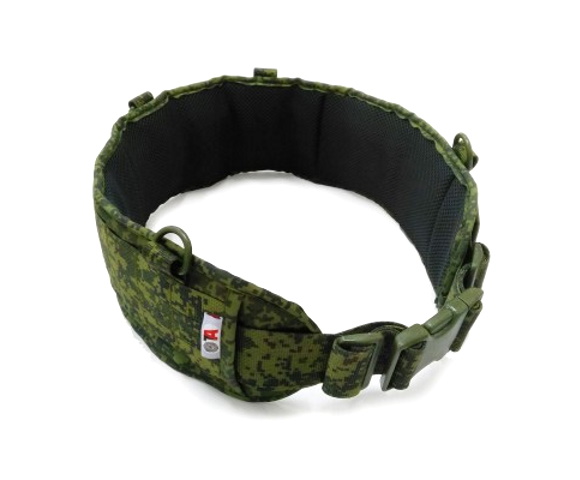 Боевой пояс является модульной разгрузочной системой, на передней панели нашиты стропы молле для крепления различных подсумков таких как магазинные, гранатные, подсумки под сброс пустых магазинов.