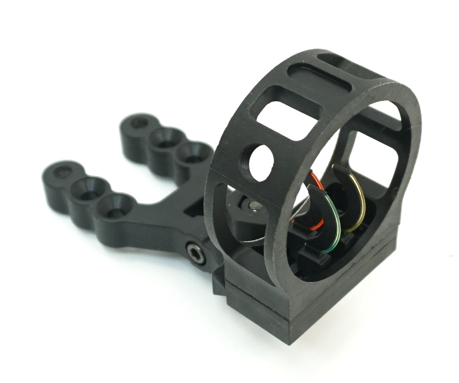 Простой прицел для блочного лука. Корпус прицела сделан из пластика. Регулировка по вертикали и горизонтали осществляется ключами-шестигранниками. Имеет три регулируемых пина.