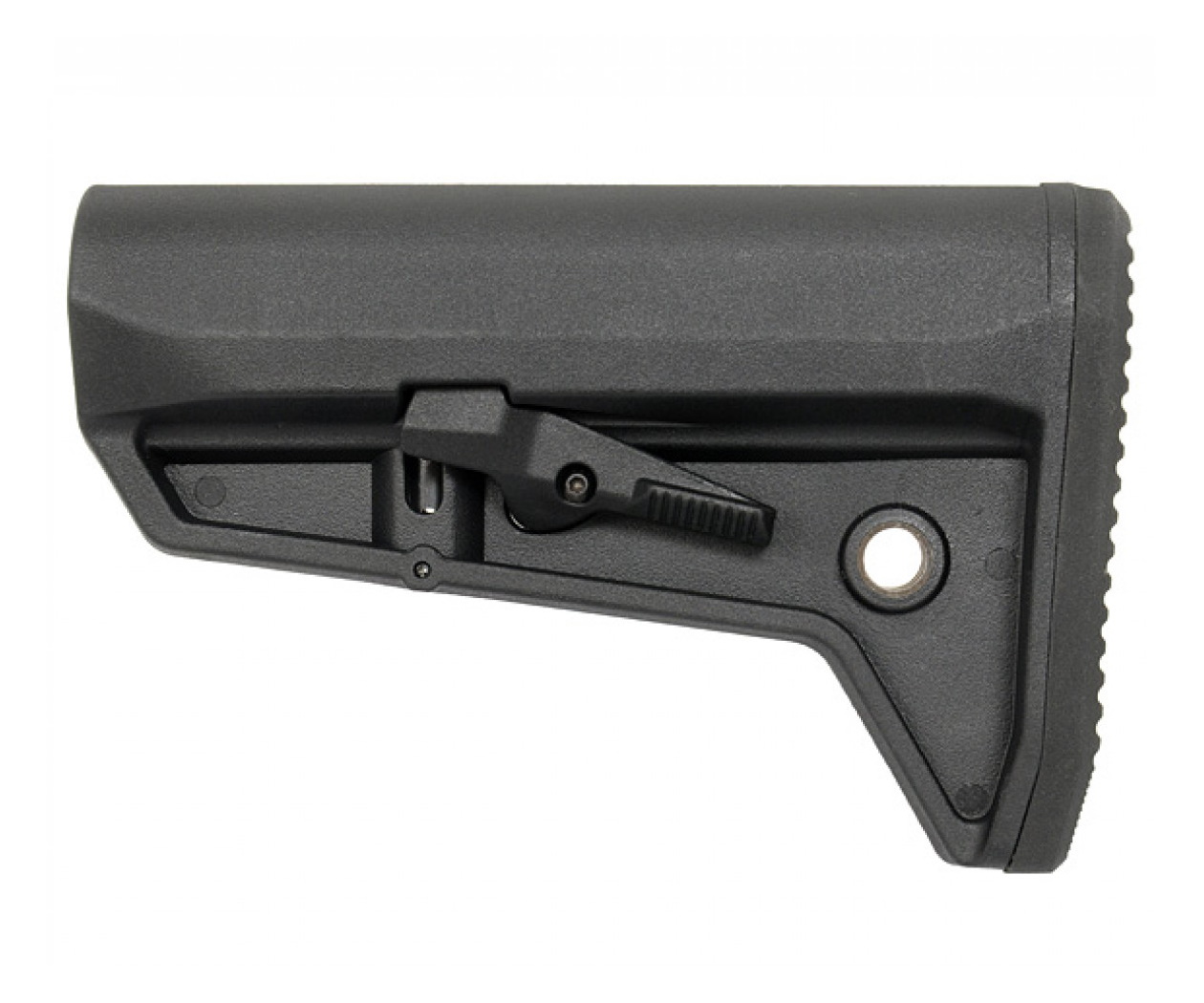 Пластиковый приклад, который предназначен для установки на стандартную трубу-направляющую таких приводов как М4, или PDW. Приклад может быть отрегулирован по длине. Тыльная часть приклада оборудована резиновой амортизирующей вставкой, закреплённой на двух винтах.