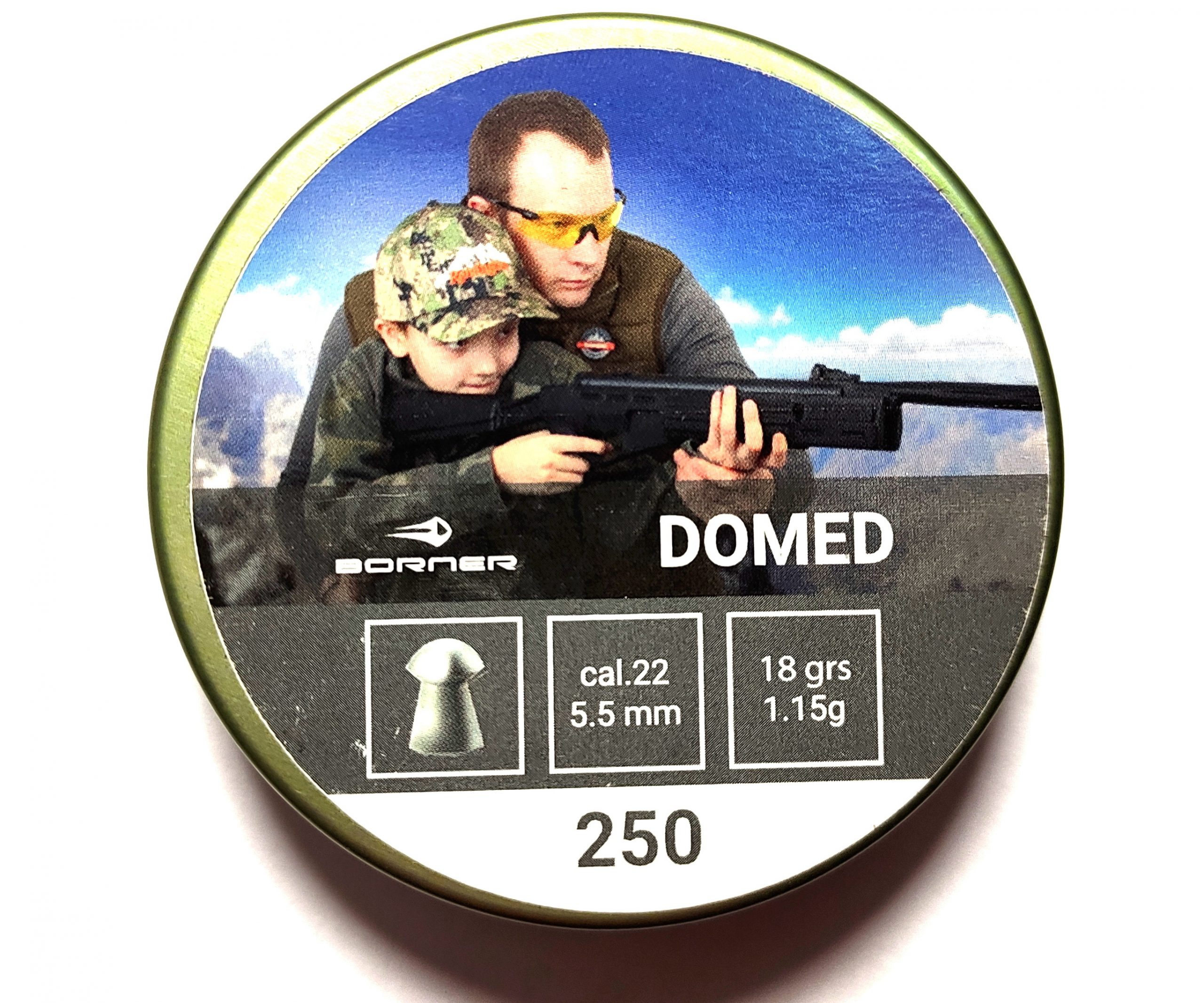 Пули Borner Domed средней тяжести калибра 5,5 мм с округлой головной частью обладают низким аэродинамическим сопротивлением. Предназначены для охоты на мелких грызунов. В упаковке 250 штук, средний вес 1,15 грамм.