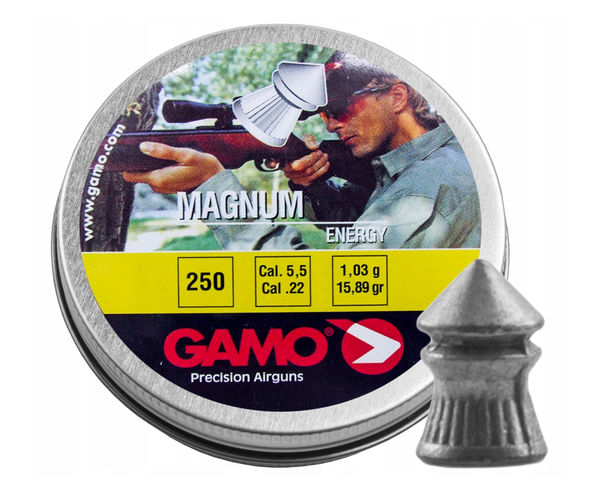 Пули Gamo Magnum для пневматики калибра 5,5 мм — это острые свинцовые пули с конической головной частью от испанского производителя Гамо. Оптимально подходят для охоты благодаря своей форме, обладают повышенной пробивной способностью. Пули в количестве 250 штук средним весом 1 грамм.