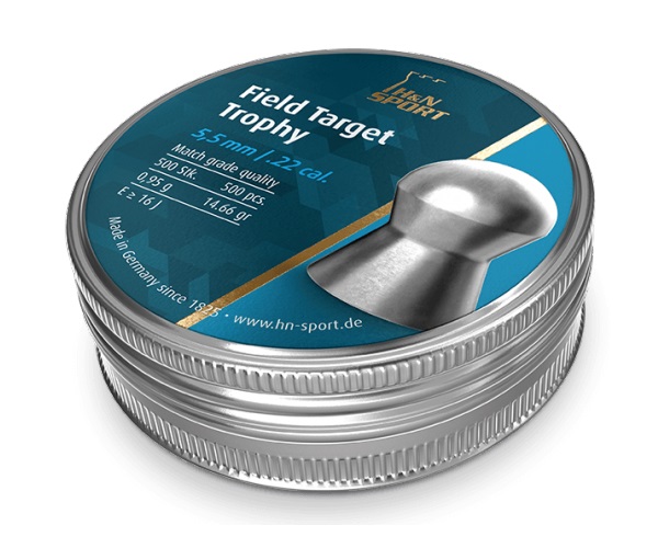 Пули H&N Field Target Trophy для пневматики калибра 5,5 мм — высокоточные пули средней тяжести с полусферической головной частью, для соревнований с настильной траекторией полета. Необычный аэродинамический дизайн для высокой проникающей способности и пробиваемости. Очень высокая кучность. Минимальное освинцовывание и равномерное распределение попаданий благодаря специальному сплаву. Имеющиеся диаметры головной части: 5,53–5,55. Поверхность гладкая. Пули в количестве 500 штук средним весом 0,95 грамм.