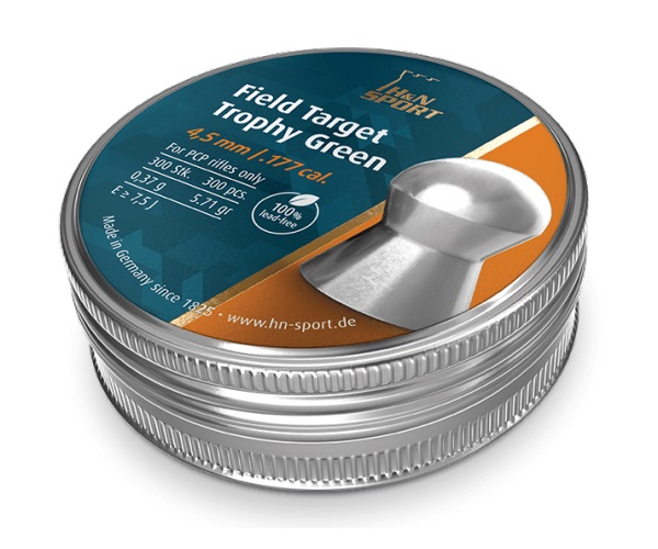 Пули H&N Field Target Trophy Green — бессвинцовые, легкие высокоточные пули для соревнований и охоты. Необычный аэродинамический дизайн для высокой проникающей способности и пробиваемости. Сверхзвуковая скорость и очень настильная траектория полета для средних дистанций. Ствол не освинцовывается, улучшенное прохождение по каналу ствола, отсутствие контакта со свинцом благодаря специальному оловянному сплаву. Высокая пробиваемость, высокая кучность. Поверхность гладкая. В упаковке 300 штук.
