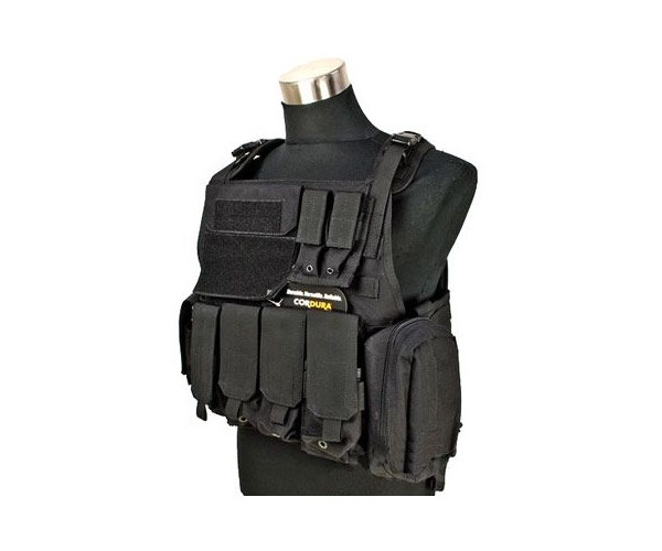 Прочный разгрузочный жилет, оснащенный системой MOLLE — это универсальный разгрузочный жилет MBAV с подсумками черного цвета.