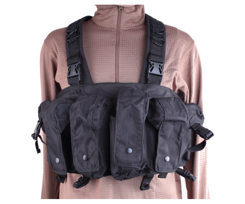 Во вместительный нагрудный разгрузочный жилет VT017B входит помимо сопутствующего снаряжения 8 магазинов АК-серии. Для этого на передней панели размещены 4 оружейных карманов, вмещающих по 2 магазина каждый, а также 2 утилитарных подсумка. Карман, в котором должны размещаться документы, находится на внутренней стороне панели.