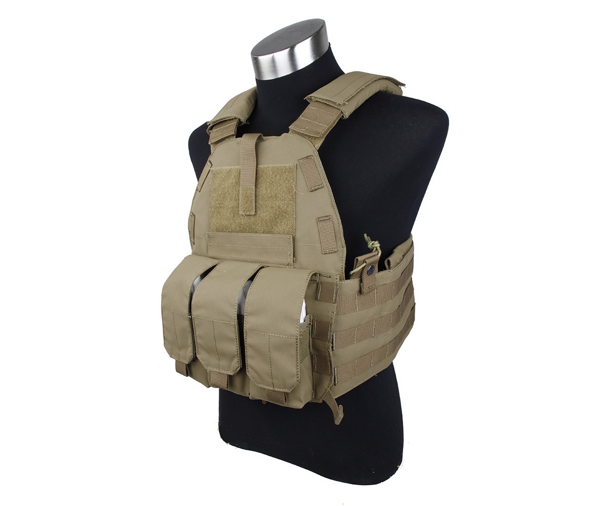 Прочный разгрузочный жилет, оснащенный системой MOLLE — это универсальный разгрузочный жилет TMC 6094K цвета койот. Он имеет спереди 3 подсумка.