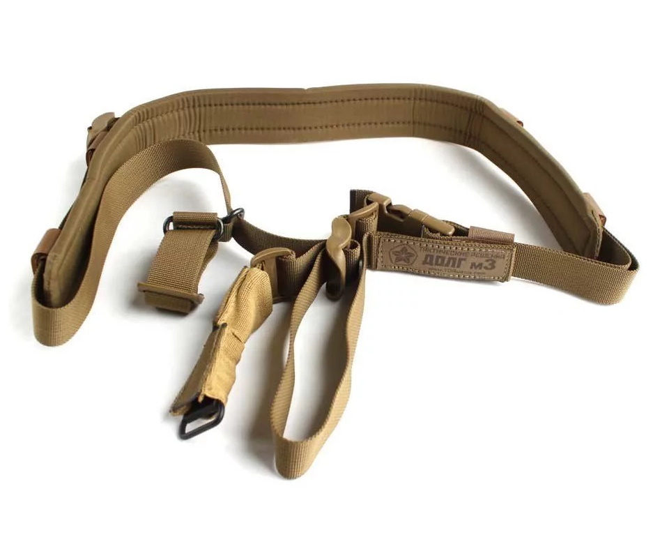 Профессиональный 1-2-3-точечный тактический оружейный ремень с мягкой подушкой DOLG-M3. «Универсальная комплектация» — карабин не пришит к ленте подтяга, а привязан с помощью двущелевой пряжки.