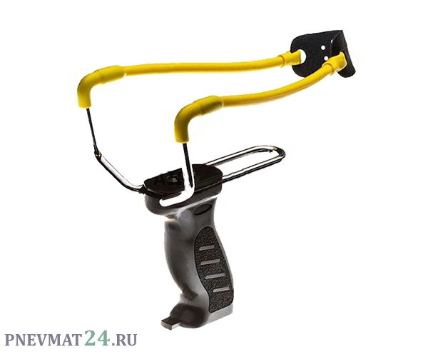 Упрощённая модель спортивной рогатки. Имеет пистолетную рукоять из пластика с текстурированными накладками, гарантирующими надёжное удержание. Рукоять также имеет встроенный магазин, оборудованный удобным устройством для выбрасывания шариков. Рогачок рогатки сделан из стали, регулируется по вылету, поэтому можно увеличить дальность выстрелов. Его концы загнуты под прямым углом к натяжению жгута, что снижает его износ. Жгут полый, в сечении круглый, состоит из нескольких слоев латекса, сделанного из каучука. Седло — из натуральной кожи. Рогатка имеет высоту 18 см. Масса оружия — 308 г.