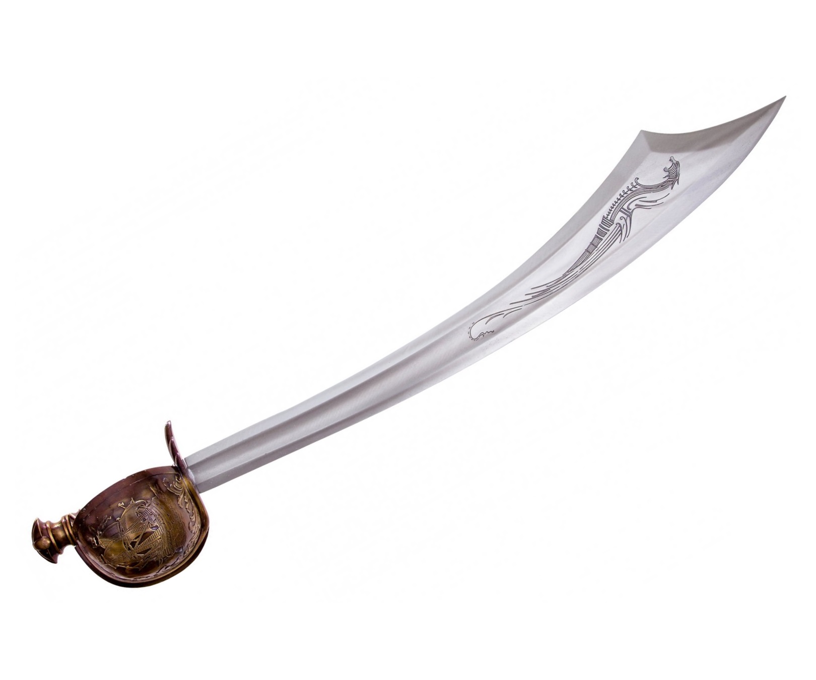 Клинок имеет своеобразную конфигурацию, он небольшой длины и расширен к концу. На поверхности клинка изображен морской дракон. Эфес имеет округлую форму гарды (ее иногда называют корзиной), она защищает руку владельца от ударов противника. Поверхность гарды украшена изображением морского корабля под парусами. Длина сабли 81,5 см, вес 1,51 кг.
