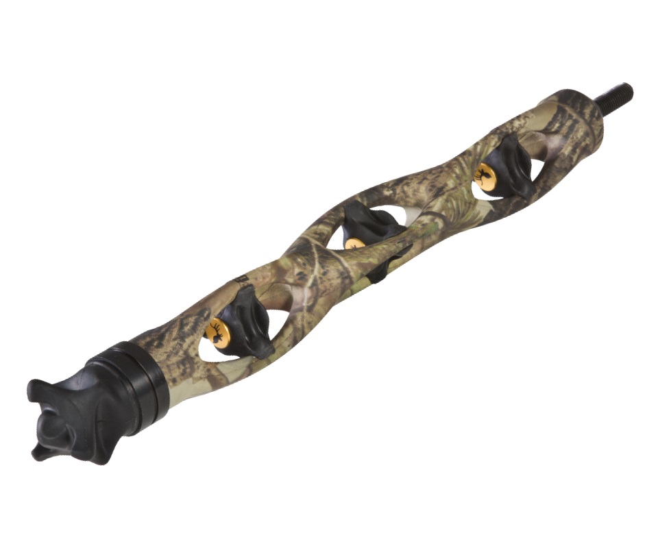 Стабилизатор уменьшает колебания лука в момент прицеливания и гасит вибрации после выстрела. Также стабилизатор смещает центр тяжести лука вперед, не давая луку заваливаться на стрелка.