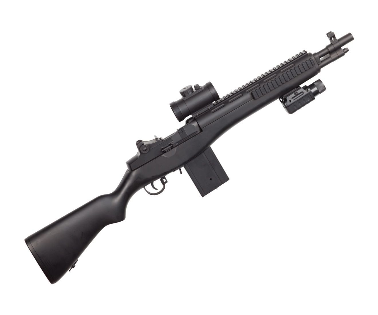 Изделие по внешнему виду сходно с оригинальной винтовкой М14, однако отличается укороченным стволом и наличием направляющих регулируемого типа для установки обвеса. Винтовка изготовлена из алюминиевого сплава и полимерных материалов, весит немного – 1,57 кг при длине – 87 см. Преимущество данной модификации – в ее богатой комплекции, включающей коллиматорный прицел, ЗУ, фонарь, аккумулятор, а также бункерный магазин и паспорт.