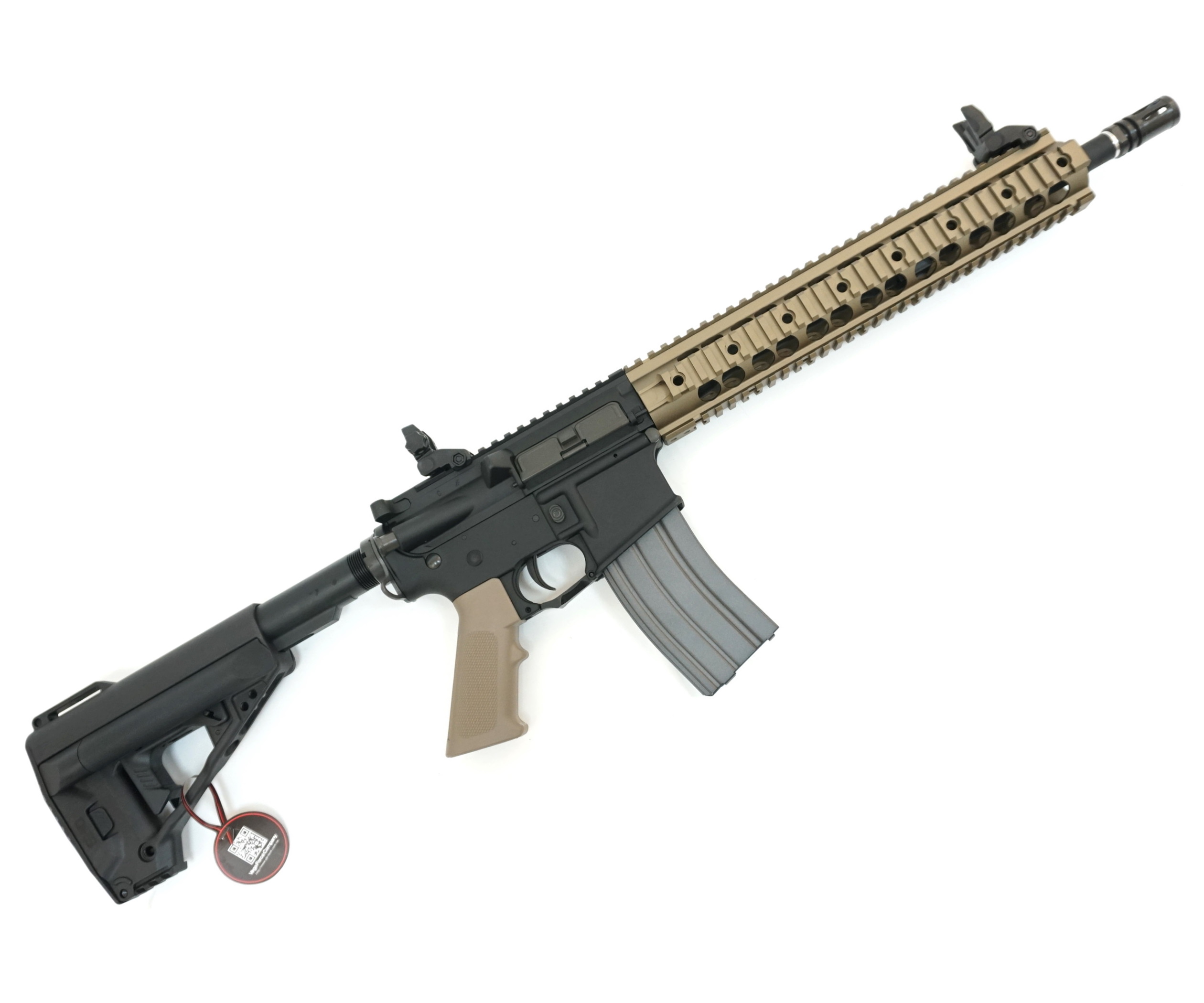 Страйкбольный автомат VFC VR16 Fighter Carbine MK2 Tan – это модификация сегмента Премиум, электропневматический карабин с телескопическим прикладом и высоким качеством сборки. Роботу мотора High Speed Motor обеспечивает аккумулятор «нунчаки», расположенный в прикладе, в специальном отсеке с откидной крышкой.