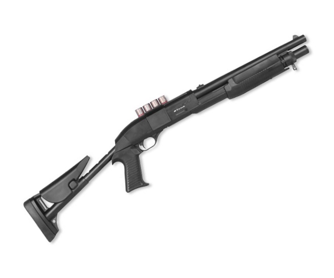 Особенностью ASG Franchi SAS 12 является раздвижной приклад, что позволяет применять такое оружие и на открытом пространстве, и внутри помещений. Ствол изготовлен из металлического сплава, основной материал – прочный ABS-пластик. С полностью разложенным прикладом длина дробовика – 78 см, вес – 1,6 кг. В комплект входит 4 картриджа и паспорт с инструкцией.