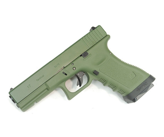 Описание страйкбольного пистолета WE Glock-17 gen3 Green (WE-G001A-OD):