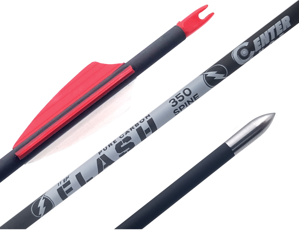 Стрелы Centershot Flash — тонкие спортивные стрелы соревновательного уровня из 100% карбона. Прямизна составляет не более 0.006 дюйма от идеальной прямой, что позволяет лучнику быть уверенным в стабильности и кучности своей стрельбы.