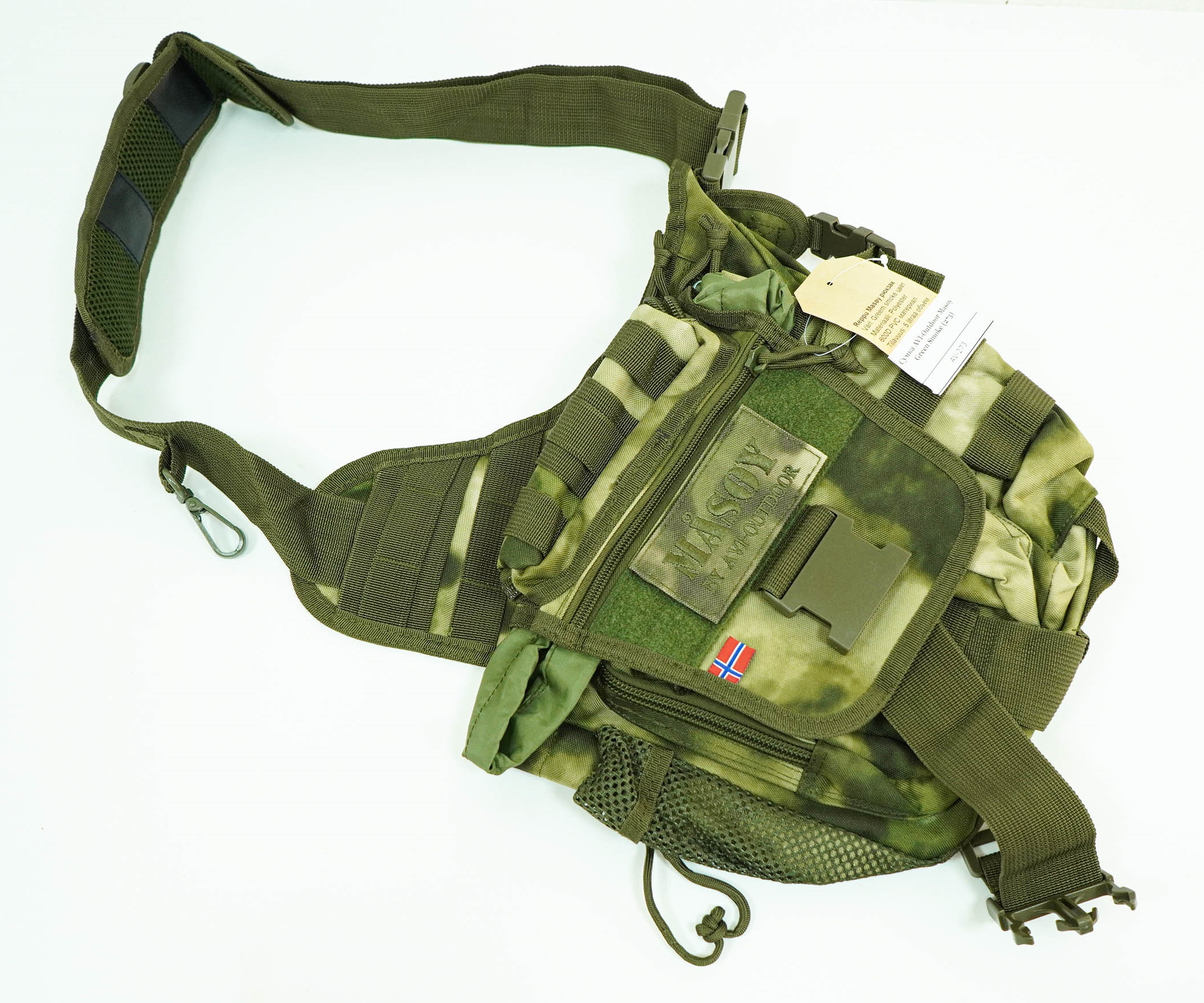 На сумке расположена платформа на липучках для именной и других нашивок. На лицевой, а так же боковой части сумки находятся петли типа MOLLE для навешивания дополнительного снаряжения.