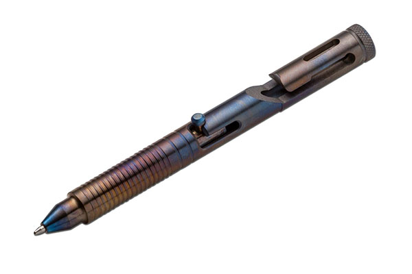 Ручка Boker 09BO095 Cal.45 Titanium Flamed, созданная по эскизам Рейнера Виннинга, для самозащиты. Удар такой ручкой по особым точкам может полностью нейтрализовать хулигана. Стилизованный титановый корпус делает ручку практически «не убиваемой». Ручкой удобно орудовать при написании текстов и во время самозащиты. Клипса прорезного типа прочно удерживает аксессуар на одежде или сумке.