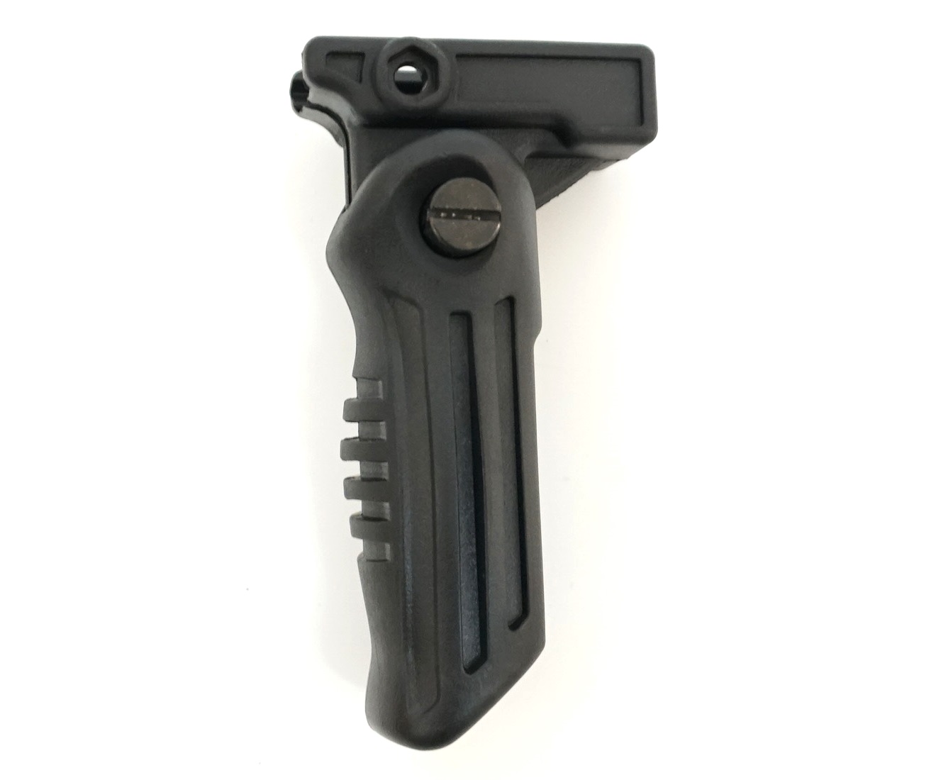 Складывающаяся рукоять тактическая. Закрепляется с помощью 20 мм рельсы-планки. Для фиксирования используется винт. Материалом для рукоятки служит пластик, рукоятка хорошо ложится в руку, это обеспечивает удобность хвата и уверенный контроль.