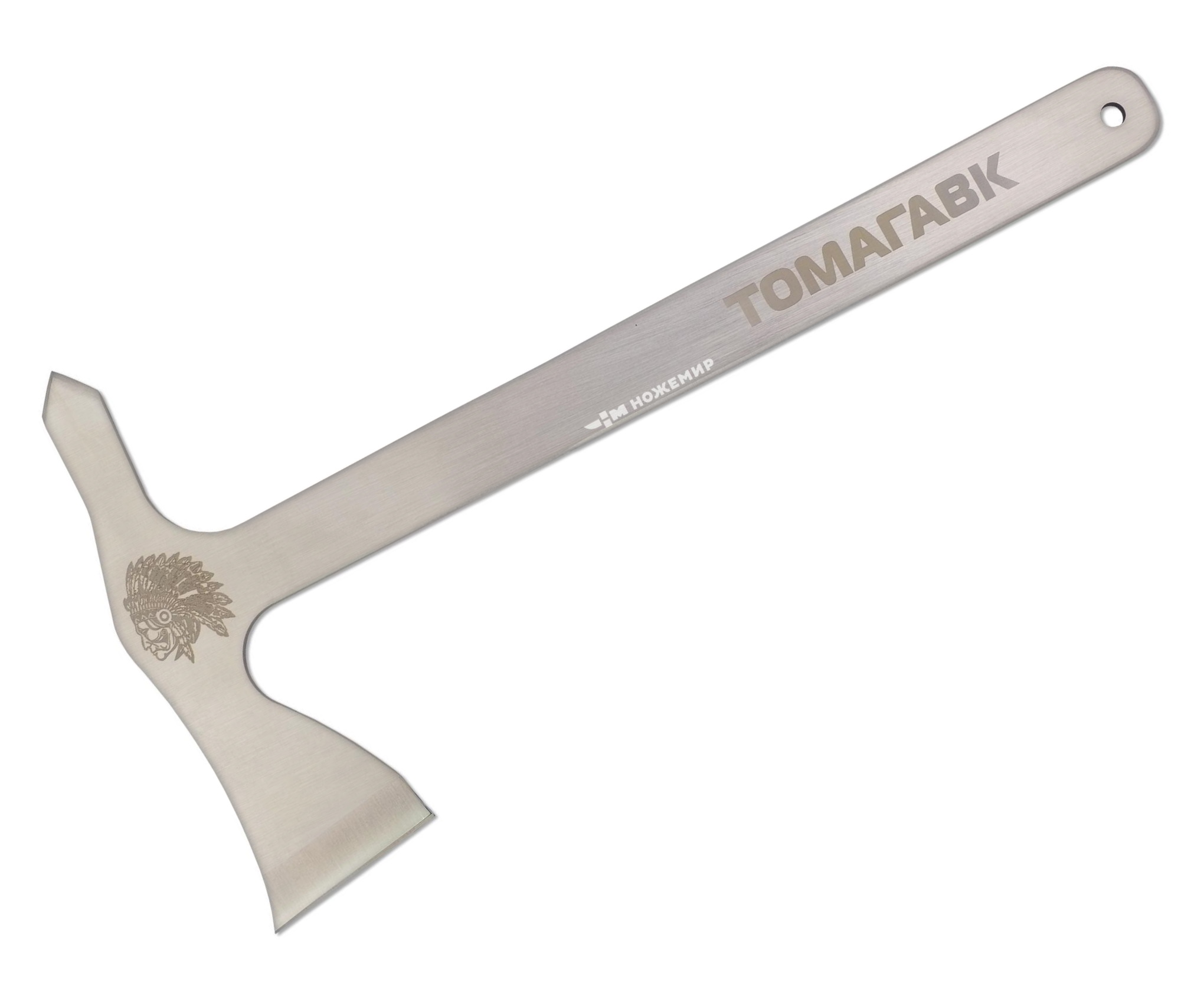 Удобный туристический топорик, стилизованный под метательный индейский топор-томагавк. Благодаря использованию стали высокого качества, а также цельнометаллической основе он наносит сильные рубящие удары не расшатываясь и не сламываясь в месте присоединения лезвия к топорищу.