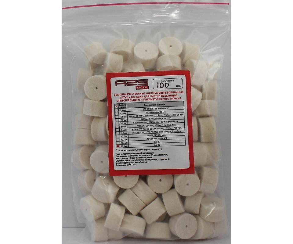Главная Аксессуары и ЗИП для пневматики Наборы для чистки оружия A2S GUN (Россия) Войлочные A2S GUN патчи, Cal. 12, 100 штук