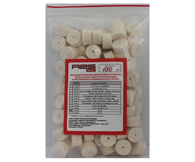 Главная Аксессуары и ЗИП для пневматики Наборы для чистки оружия A2S GUN (Россия) Войлочные A2S GUN патчи, Cal. 20, 100 штук