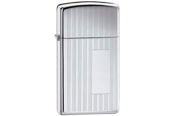 Zippo 1615 Slim – узкая полированная зажигалка с тонкими вертикальными полосками на лицевой стороне корпуса.