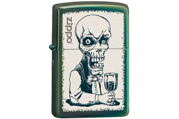 | Цвет корпуса: | хамелеон, изображение — скелет-бармен + логотип Zippo |